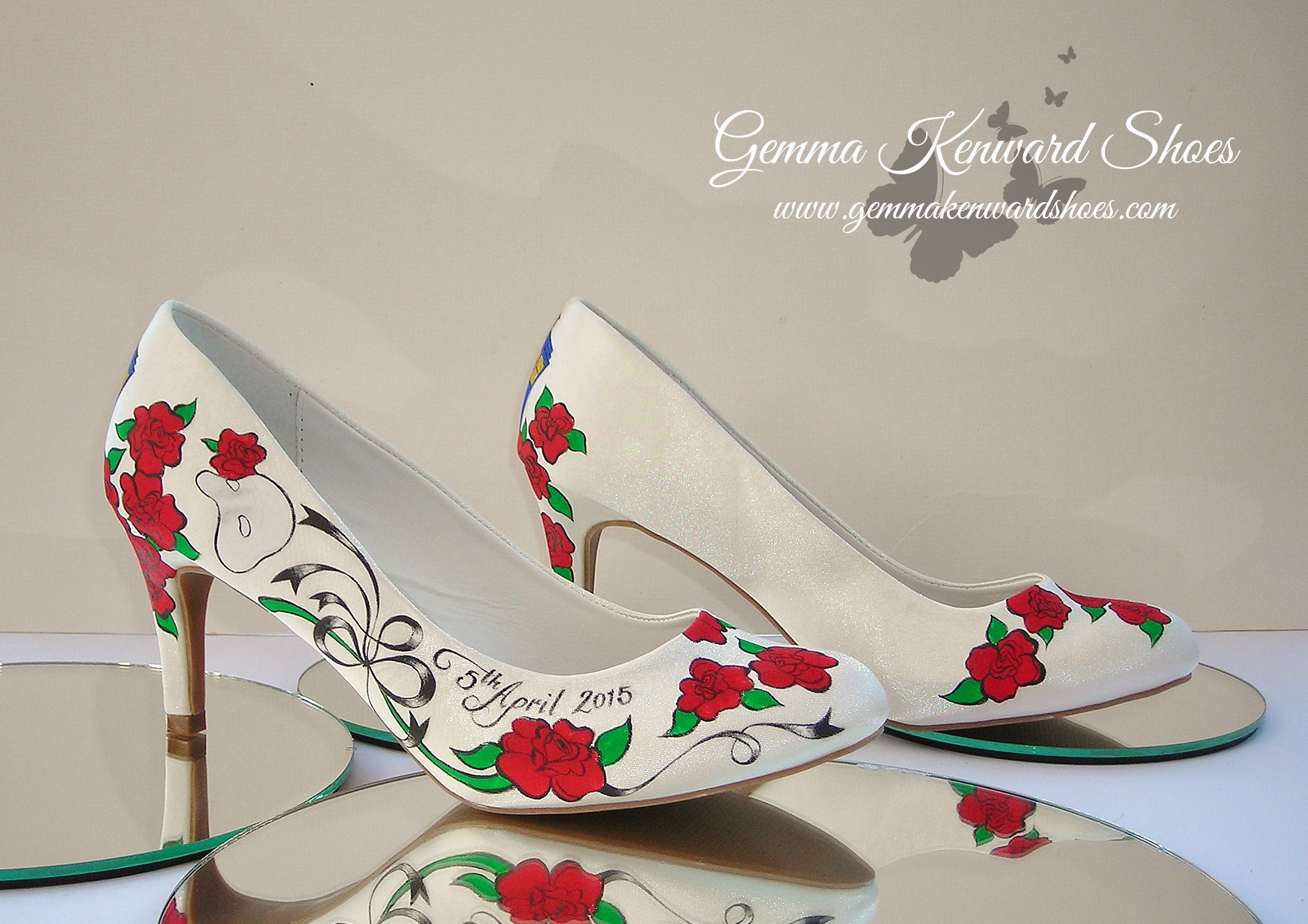 Personalised Wedding Shoes with Red Roses and the Tardis! Doctor Who Style!
